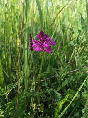 Die Kreisgruppe Würzburg lud Ende Mai zu einer Exkursion an die Trockenhänge bei Böttigheim ein. Unter der Führung von Niels Kölbl wurde zuerst ein Massenvorkommen der Bockriemenzunge bestaunt und ein Blick auf das seltene Sommer-Adonisröschen geworfen, während Baumpieper für akustische Umrahmung sorgten. Nach dem Austausch mit einem Böttichheimer Landwirt, der für die Beweidung der Trockenhänge sorgt, ging es auf die LBV-eigenen Flächen, die erst kürzlich im Rahmen einer Flurneuordnung erweitert werden konnten. Dort konnte zwischen Wacholderbüschen eine große Vielfalt an Orchideen und Sommerwurzen bestaunt werden, etwa pink leuchtende Pyramiden-Hundswurzen, Ohnhorn, Ragwurzen, Amethyst- und Große Sommerwurz. Nun ist die Kreisgruppe neugierig auf die Entwicklung dieses Kleinods in den kommenden Jahren.